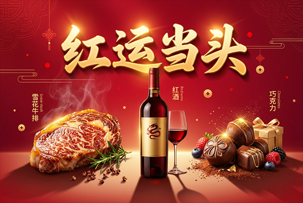 澳洲和牛雪花牛排 + 拉菲红酒。红红火火的寓意,高端商务宴请的顶级排面。